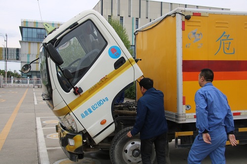 2021年10月27日公司领导带领工作人员对所用爆炸物品运输车辆进行出车前车况安全检查。