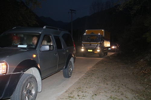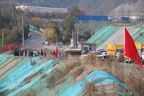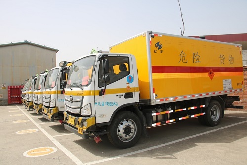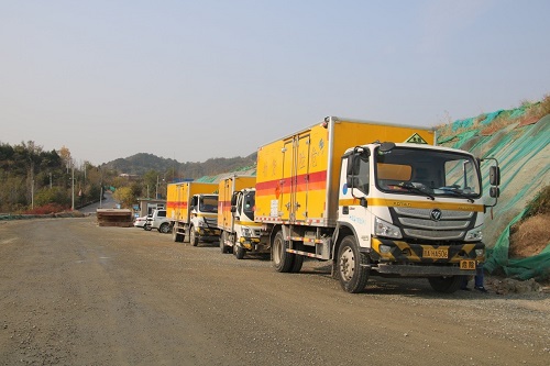 爆炸物品销毁工作结束后北京鑫运昌民用爆破器材有限公司运输车队准备撤离销毁现场。