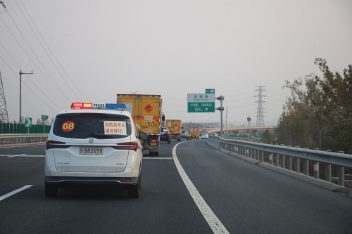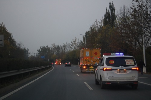 6点25分,爆炸物品装车完毕,车队准备出发,由于此次运输爆炸物品的特殊性,运输车队由公安、交通管理部门派专人、专车全程护送前往销毁现场。