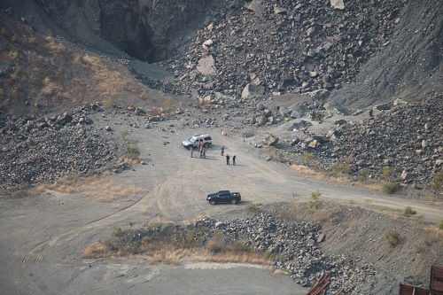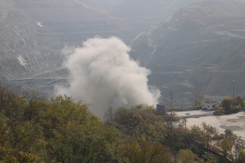 12点10分,销毁现场爆炸物品装坑码放工作结束后现场工作人员撤离到安全地带,准备进行销毁起爆。