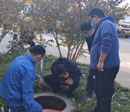 督查组人员对公司消防水井进行检查