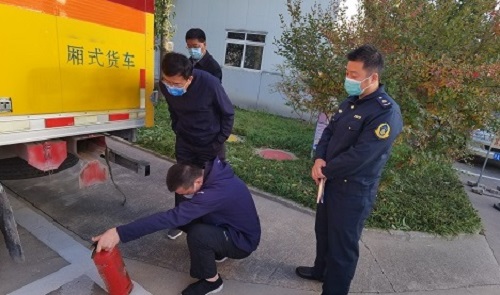 督察组人员现场检查危运车辆灭火器