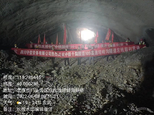 109新线高速七工区塔岭沟隧道工程于2020年11月15日开始民爆物品配送任务,2022年6月8日,左线顺利贯通,历时571天,配送942车次。